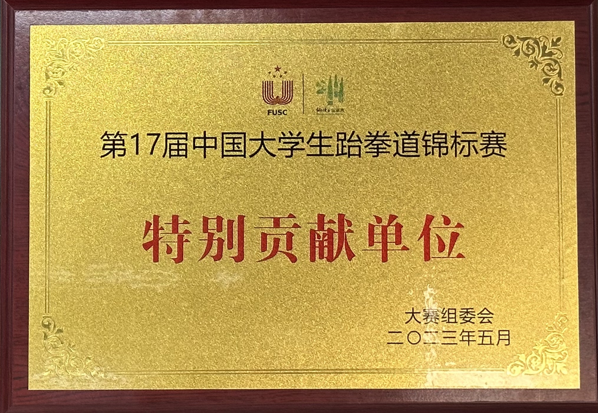 △我司被授予第17屆中國大學生跆拳道錦標賽特別貢獻單位