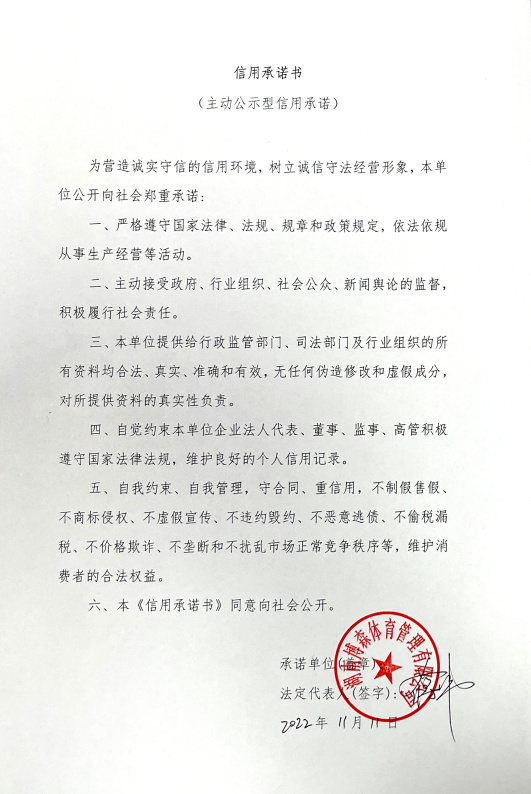 公司作為市體育行業社會主體代表,始終堅持誠信為本、守信為先,為客戶提供全面、專業、有效的體育服務。在今后的生產經營中,將持續發揮示范表率作用,嚴格遵守《湖南省社會信用條例》內容,依法依規,主動接受各界的監督,積極履行社會責任。