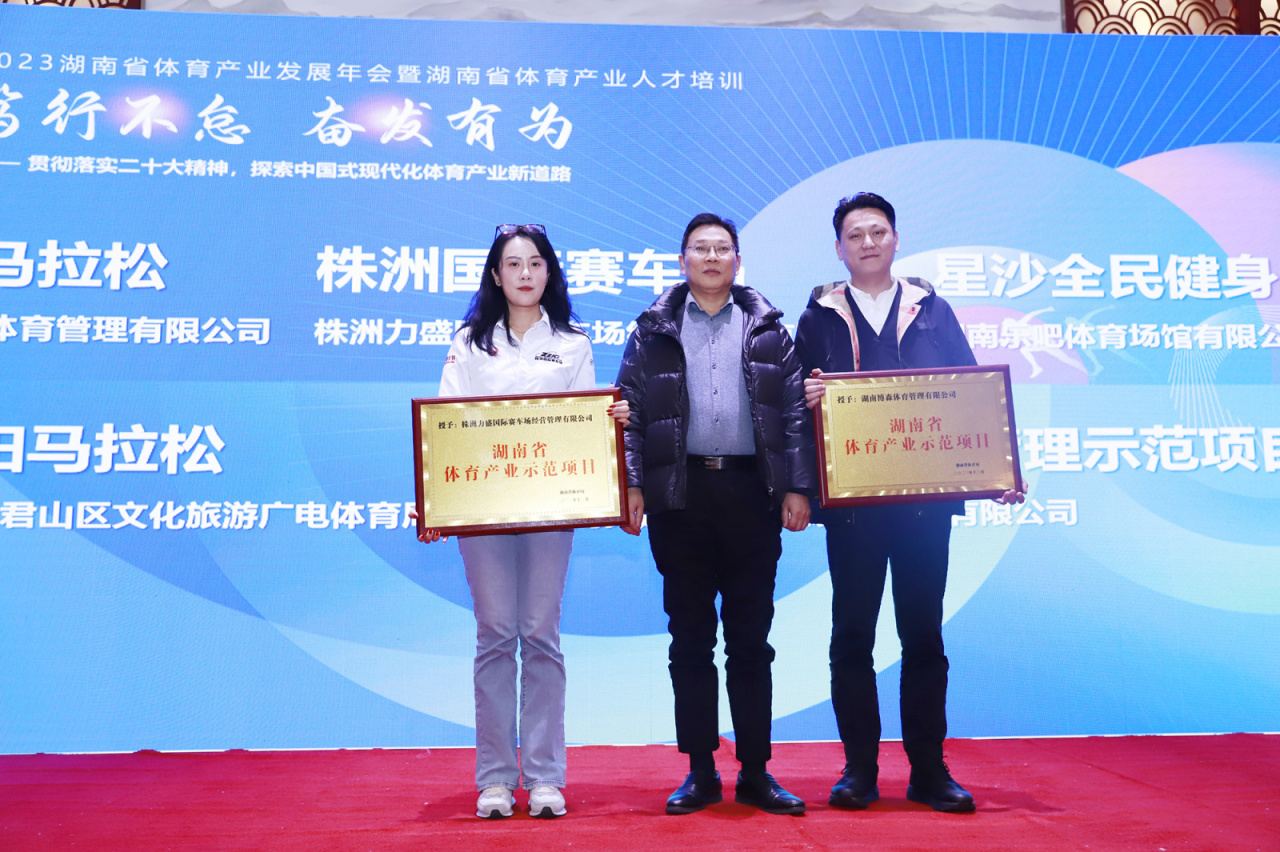 15日上午,2023年湖南省產(chǎn)業(yè)發(fā)展年會暨湖南省體育產(chǎn)業(yè)人才培訓在長沙華天大酒店召開。我司運營的IP項目-湘江馬拉松賽榮獲2023湖南省體育產(chǎn)業(yè)示范項目并獲得授牌。